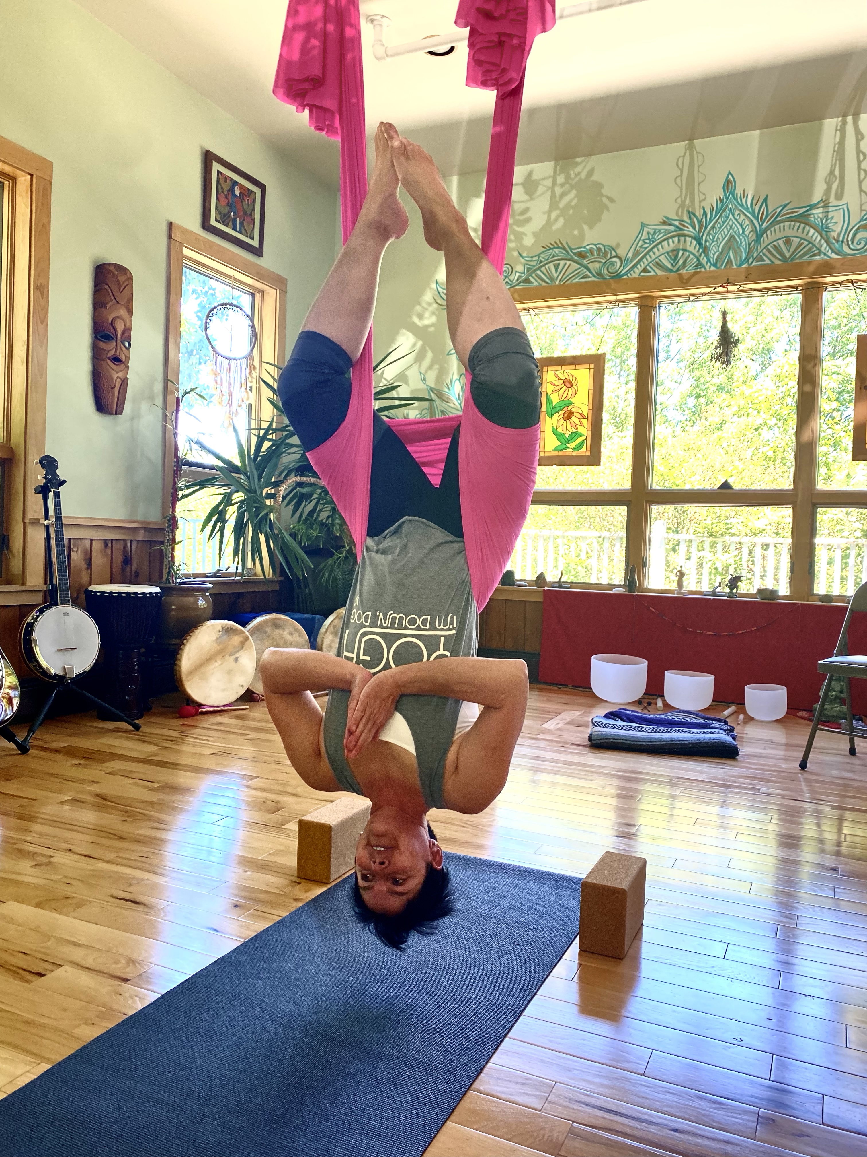 Aerial FLOW YOGA we will incorporate all of the foundational practices as we do in the Aerial for All classes, as well as incorporate more intensive core practices and inversions. ππππ